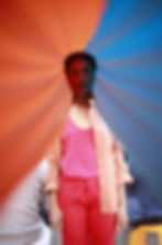 Um corpo sagrado feminino negro composto pelos elementos terra sobre fogo, com cores luxuriantes e quentes, principalmente os vermelhos e o dourado. Uma malha feminina representado esotericamente por dois triângulos sobrepostos. Cada ponto é de uma cor diferente, o que transmite a ideia de colorido, matizado. Utilizando seis cores diferentes, não importando quais sejam elas.